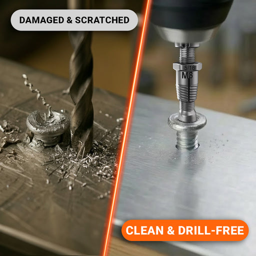 No. The self-centering design keeps you perfectly aligned with the original hole, and the controlled extraction process removes only the broken fastener - leaving threads intact and ready for a new bolt. No off-center drilling, no thread damage, no expensive re-tapping required. Your repair stays completely professional and invisible.